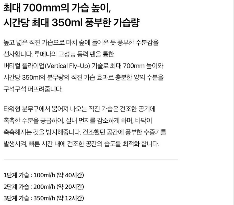 ♣ 버티컬 플라이업 기술을 통한 선명하고 풍성한 직진 가습