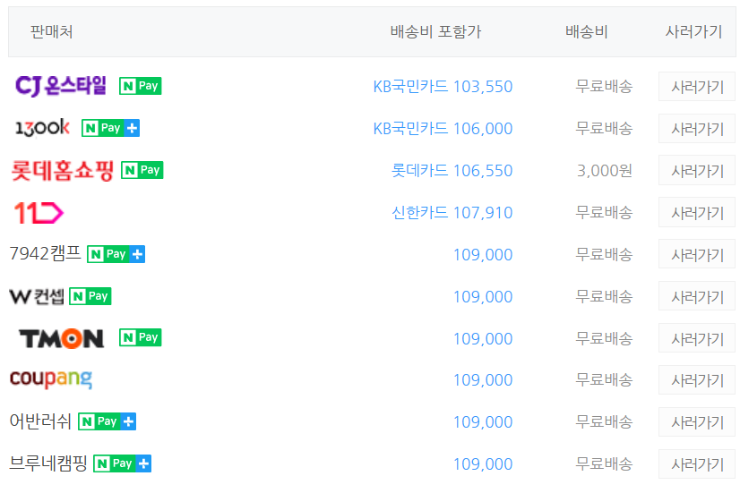 ☞ W컨셉 / TMON / 쿠팡 / 어반러쉬 / 브루네캠핑