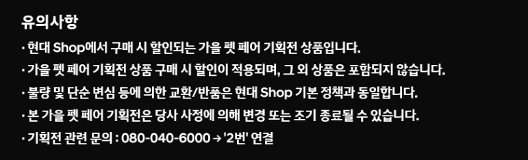 현대 shop에서 반려동물을 위한 가을 펫페어를 10/1~10/31(화)까지 할인축제를 갖습니다. 댕댕이를 위한 생활용품에서 외출용품까지 최대 79%까지 할인을 진행하니 관심있는 분들은 아래에서 살펴보시고 혜택받으세요.