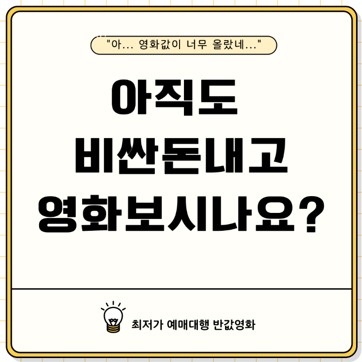요즘 물가가 너무 많이 올라서 문화생활 하는 것이 예전 같지가 않잖아요. 이 고물가 시대 한 푼이라도 저렴하게 영화 보는 방법을 소개합니다. CGV, 롯데시네마, 메가박스 실시간 최저가로 영화 예매를 하니 아래를 참조하시어 저렴하게 영화 예매하세요.